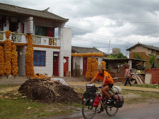 After more than a year of trying to adapt to hot and humid climates, it was a pleasure being able to breathe again at the more comfortable altitudes of SW China. However, the continued move to the NW has brought with it some high altitudes and cold weather (especially with the approach of winter). The route from Dali to Lijiang was fairly uneventful (of course there were some hills!). Like Dali, Lijiang also has an ancient city, dominated by the wooden tile-roofed buildings in the style of the local Naxi people. We are living in the Old City with its cobbled alleys and gushing streams - and of course the local tourists are all over the place again! For a couple of days Leana and I were away from Lijiang, travelling North by bus to the high altitude town of Zhongdian (a.k.a. Shangri-La). That town also has an old part, and is also rather touristy (at that altitude even the cheap youth hostel where we stayed had electric blankets on the beds). I'd taken my bike with on the bus, and spent 2 days cycling back to Lijiang while Leana spent that time hiking in the famous Tiger Leaping Gorge. Zhongdian and the high-altitude rolling plains (3400m) made for rather cool and O2-shy cycling, but the area has a pleasantly strong Tibetan flavour. My cycling route back to Lijiang took me down past the mouth of the Yangzi River Gorge (Tiger Leaping Gorge), as well as the foothills of Jade Dragon Mountain (Mt Satseto 5500m). Tomorrow we plan to cycle NE from here, towards the mystical Lugu Lake on the border with Sichuan Province. Daily distances I've cycled since Dali have been: Songgui 99 km; Lijiang 74 km; Zhongdian (by bus); Qiaotou 106 km; and return to Lijiang 83 km. Total distance cycled on this journey so far is 48 439 km.